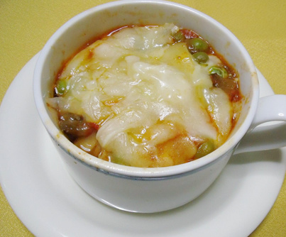 茄子と玉ねぎ スパムのトマト煮込みチーズのせ みんなの缶つま 缶つま倶楽部